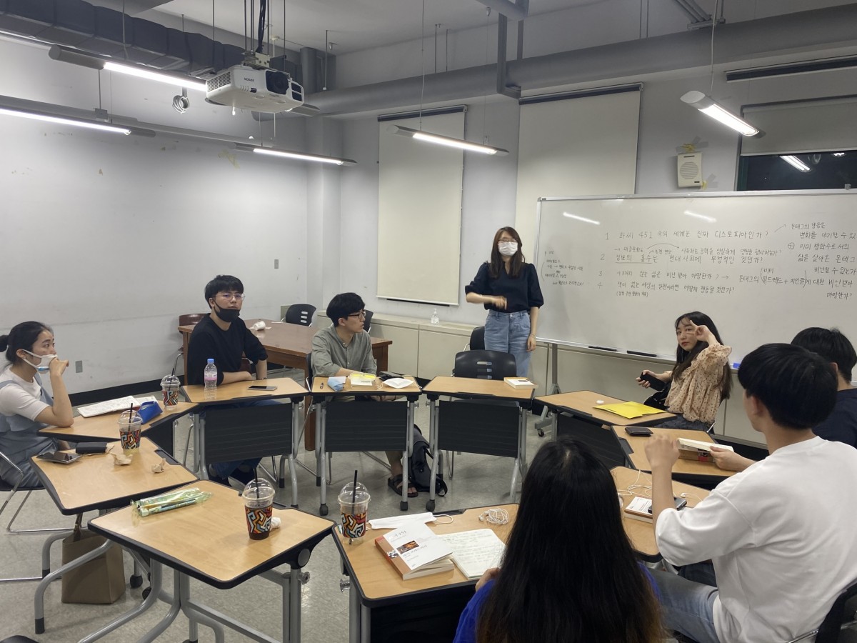 이번 주에 다룬었던 커리는 레이 브래드버리의 <화씨 451>입니다. 커선자 윤선씨의 인생 책들 하나라는 이야기를 들었던지라 개인적으로 읽기 부터 설렜던커리였는데요! <화씨 451>에서는 책과 인간이 사유하는 것을 통제하는 디스토피아의 모습을 보여줍니다. 여타 디스토피아 소설과는 상이하게 독재 정부 기업에 의한 통제가 아닌 사회구성원들 스스로 책을 없앤다는 점이 흥미롭게 와닿았는데요. 개인적으로 소설 자체가 재미있었기도 하고 시대적 흐름을 초월하여집약적이고 자극적인 정보를 우선적으로 수용하려고 하는 현대사회에서 (텍스트) 갖는 의미와 무게에 대해서 생각해볼 있는 기회를 제공한 유익한 커리였다고 생각합니다!