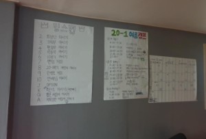 픽업차량을 타고 도착한 펜션은 도착하자마자 기획부장 승아에게 주변 사람들의 무수한 악수의 요청이 이어질만큼 기대이상! 노련한 108기답게 넓은 거실, 아니 넓다는 말로 설명하기는 아쉬울 정도로 넓은 거실과 낙오자들의 보금자리가 같은 두개의 , 떡하니 놓여있던 노래방 기계(*중요* KY 아니라 TJ) 선발대를 맞아주었습니다. 집으로 이사를 아이처럼 다들 신나게 구석구석 탐방을 마치고 가져온 짐을 정리한 2 3일간의 일정을 커다란 전지에 적고모서리를 꾸미던 도중 누군가 노래방 기계에 손을 어라…? 머리에 안개가 것처럼 기억이 나지 않는걸…? 후로 보였던 광경은 헐떡이는 숨소리와 바닥에 지쳐 널부러져 있던 사람들뿐이었습니다. 하지만 이것은 내일까지 이어지는 성대 혹사의 시작일 뿐이었으니간신히 정신을 차린 우리들은 후끈한 공기를 식히고 제습기도 틀며 후발대를 맞을준비를 했습니다. 얼마 지나지 않아 아메리카의 향기가 물씬 풍기는 대량의 냉동식품의 손을 잡고 도착한 후발대까지 합류했고 열댓명 넘는 사람들이 모이자 복작복작하니 다같이 놀러온 느낌도 스멀스멀 올라오기 시작했습니다.