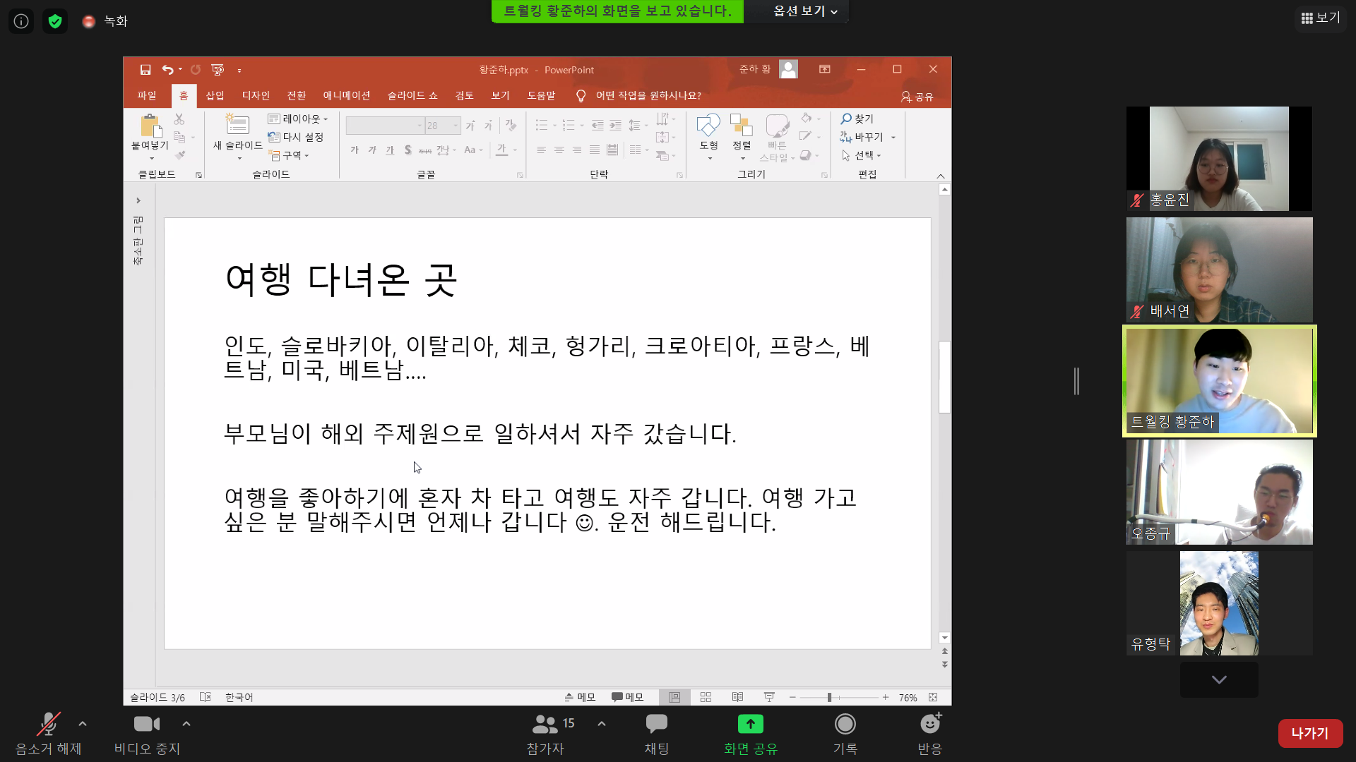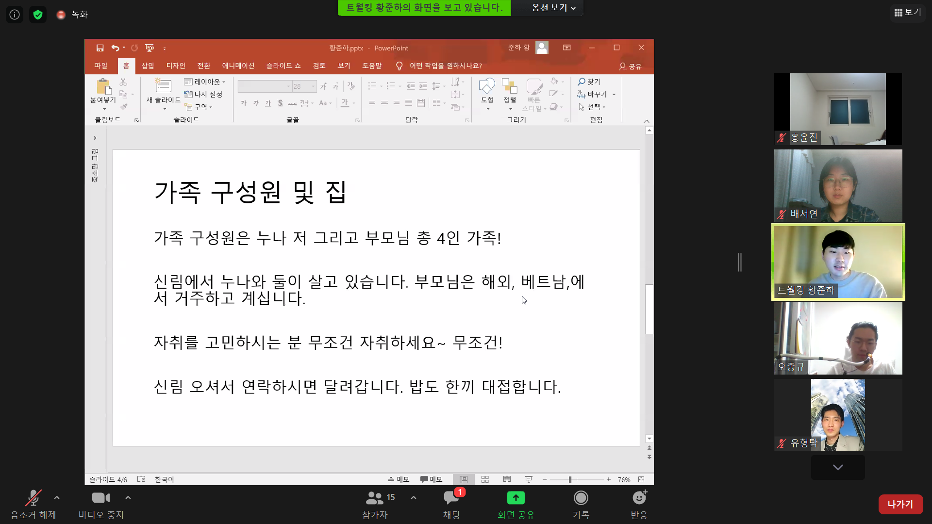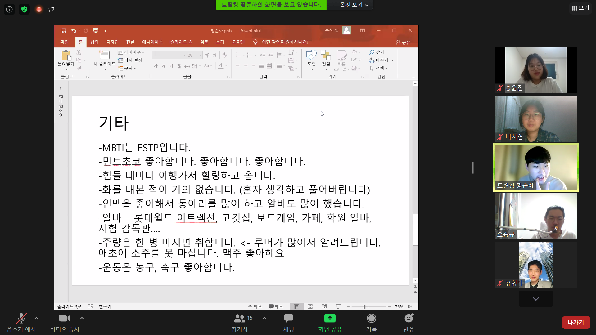 정모가 끝난 뒤에는 112기 황준하씨의 신입생발표도 진행되었습니다. 다양한 언어를 구사할 수 있다고 하셨던게 매우 인상깊었습니다. 이번 주 사모, 정모 그리고 신입생 발표까지 모두 정말 즐거웠습니다. 이상으로 멤사를 마치도록 하겠습니다.