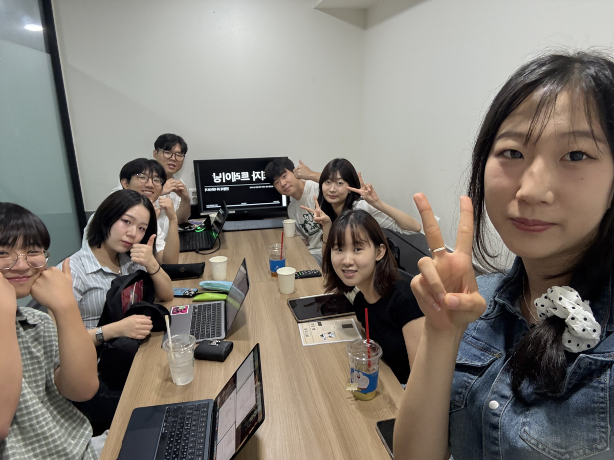 2부에서는 먼저 사트가 진행되었습니다. 학술부장인 민규씨가 열심히 준비한 자료들을 함께 보며 사회자가 얼마나 중요한지 잘하기 위해서는 어떤 노력이 필요한지 인지하는 시간이었 습니다. 이전 학기에 토론이 조금 잘 안되는 순간이 있었는데 그때 사회자가 정리를 잘해줘 토론이 완성도 있게 마무리되었던 기억이 떠올랐습니다. 사트 이후에는 신입생 모집 관련 회의가 있었는데요. 면접 때 활용할 질문 문항들을 하나씩 검토하는 시간이었습니다. 모두 열심히 자기 의견을 펴주는 모습에서 감동이었습니다. 학교 수업 시간에 조별 활동하면 아 무도 말을 안해서 힘들었던 경험이 많은데 진정한 조별 활동의 의의를 느낄 수 있었습니다.